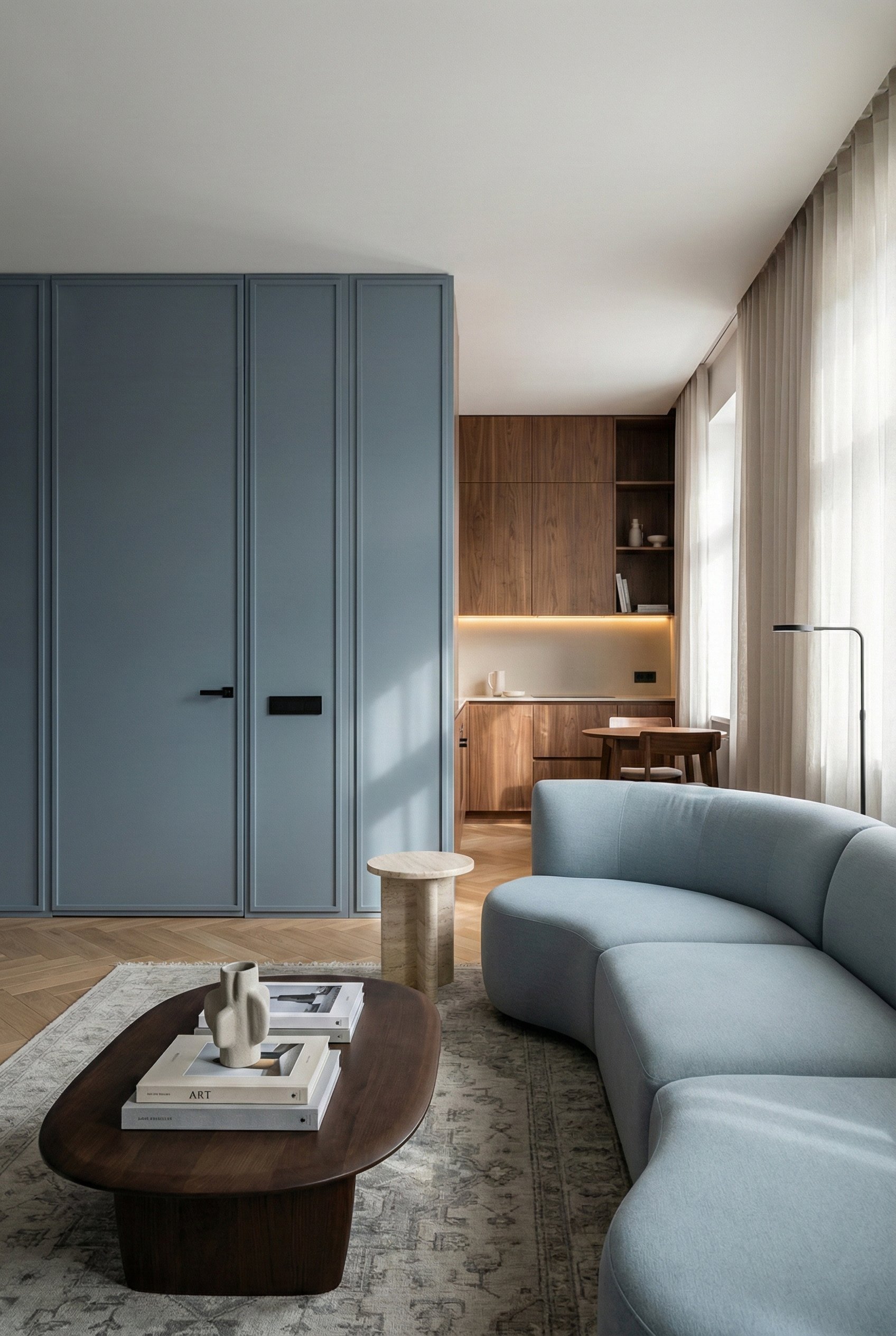 - and we keep seeing the same issue: the space is thoughtfully designed down to the smallest detail, yet doors often feel like an afterthought. They break clean lines, steal valuable space, let sound through, warp, and show wear far too quickly.